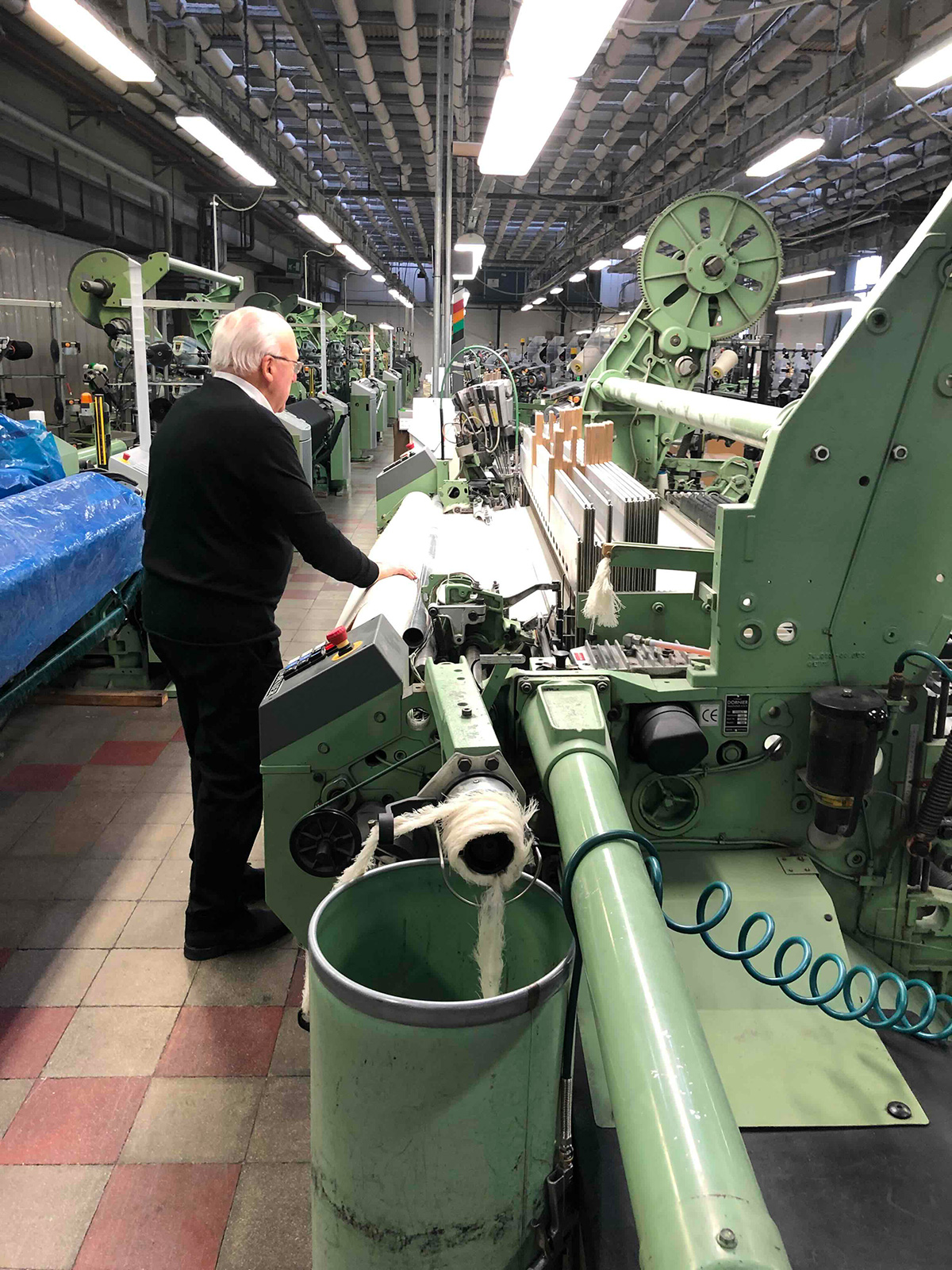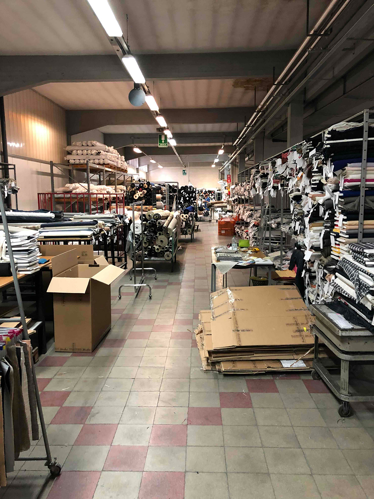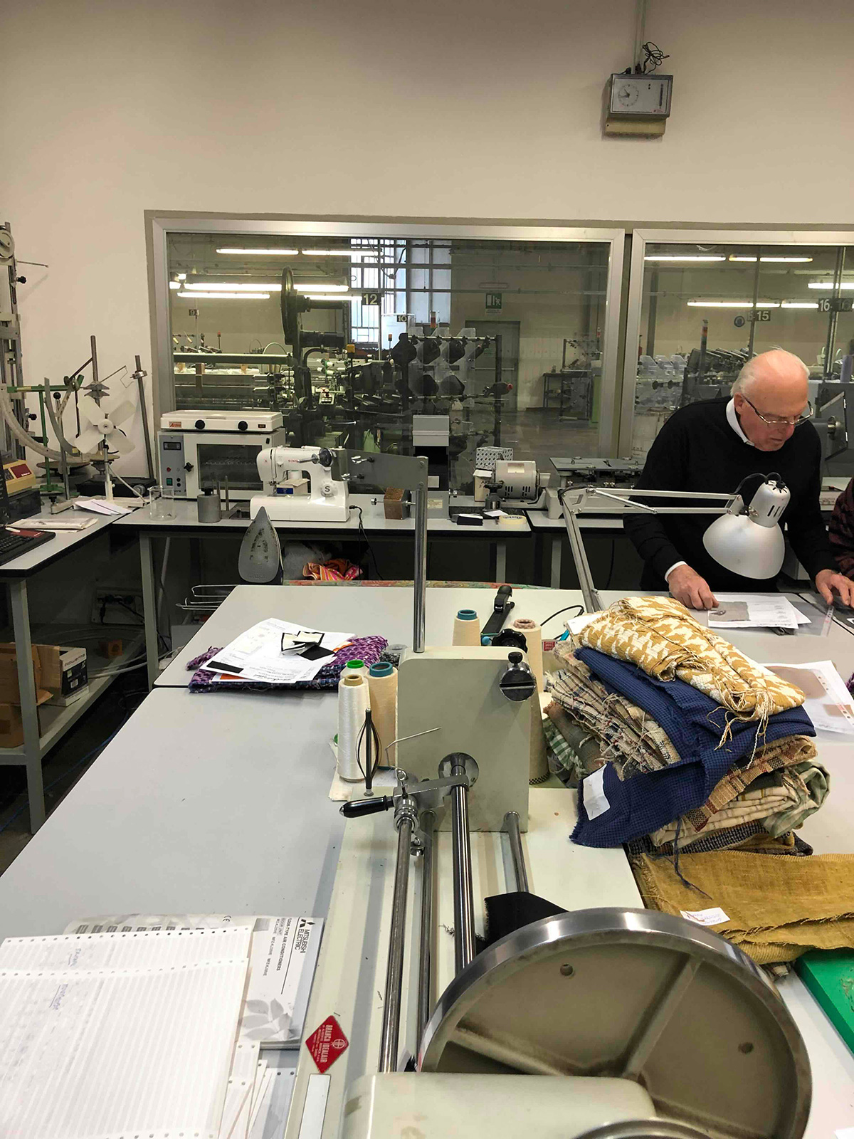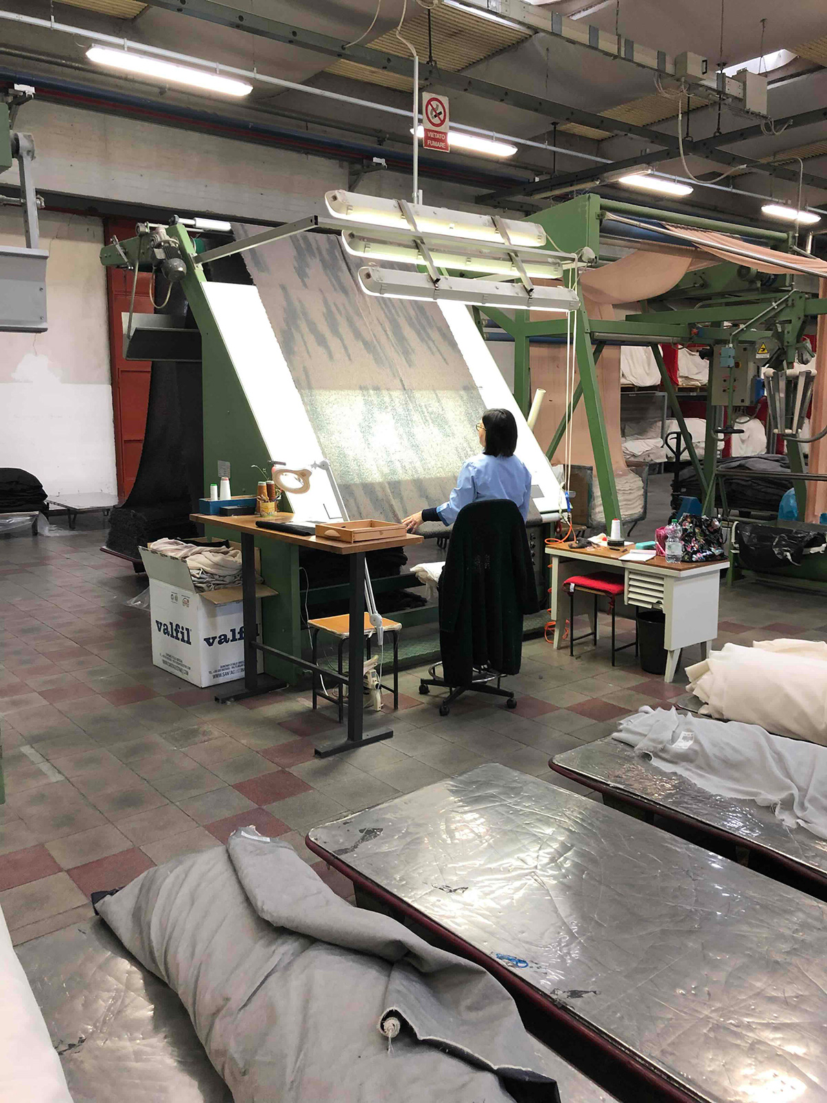 イタリア・カンピにある広大な敷地面積の工場に伺った際にも生地の事、途中工程や生地加工の事を沢山学んだ。